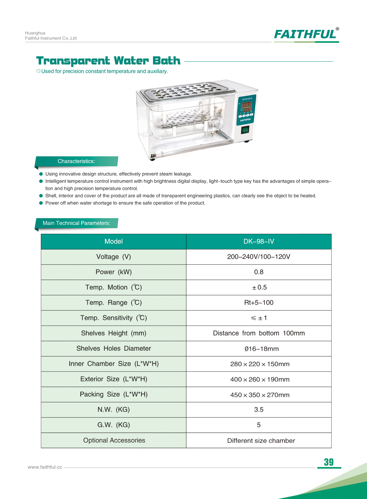 | Temp. Intervalo (℃) | RT+5 ~ 100 | ||||