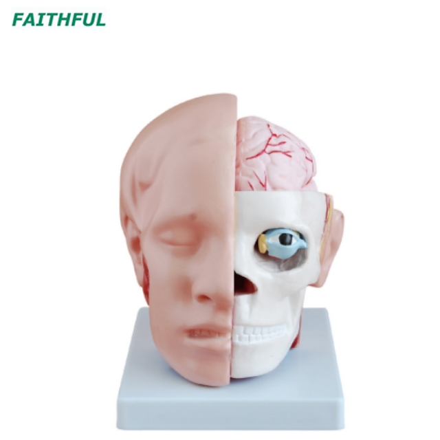 Este modelo mostra a estrutura da cabeça, incluindo a estrutura cerebral dentro do crânio.