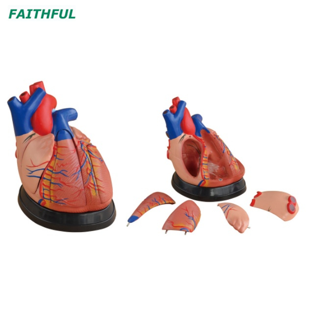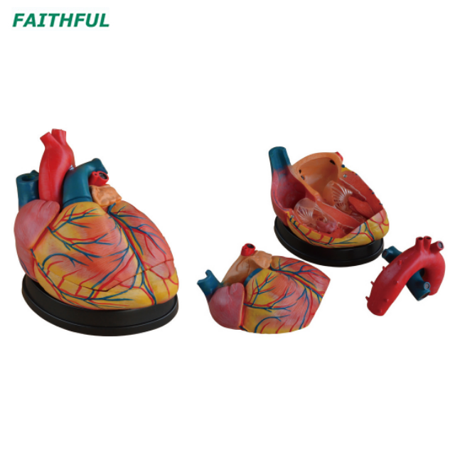 Este modelo mostra recursos externos e estruturas internas do coração e sua relação entre grandes