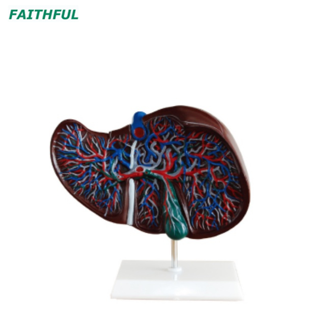 Este modelo mostra as estruturas anatômicas básicas do fígado. A rede de vasos do domínio no fígado aberto, exibido em diferenciadores diferenciados no modo Iver: vasos de hius, os ductos biliares extra-hepáticos e intra-hepáticos. No suporte.