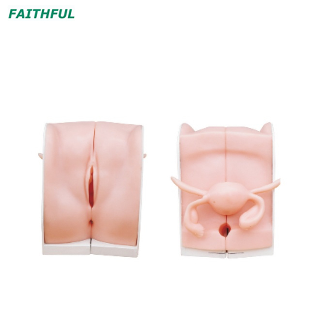 Este modelo mostra a seção anatômica dos genitais femininos. Pode ser demonstrado como colocar o pessário, como colocar a membrana ou tablet da medicina contraceptiva, como colocar e retirar o DIU e como fazer aborto induzido etc.