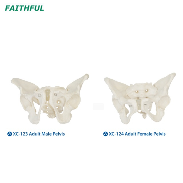 Uma pélvis masculina com uma feminina, as diferenças entre esses dois podem ser listadas da seguinte forma: