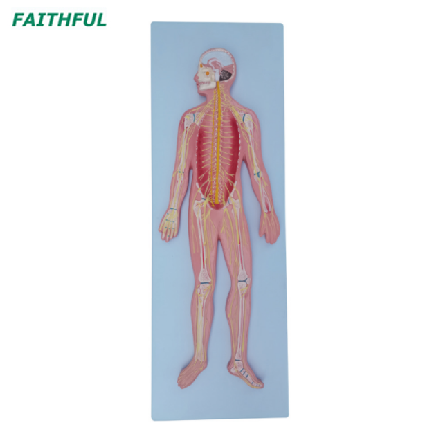 Este modelo de sistema nervoso mostra uma representação esquemática do sistema nervoso central e periférico. Esse é um excelente modelo para estudar a estrutura do sistema nervoso humano.
